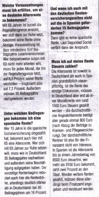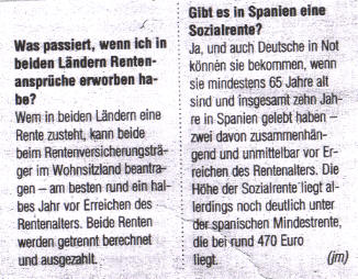 Sie wollen in Spanien Rente beziehen. Rechtzeitige Information ist angesagt, um ungerechte Ausschlusssituationen zu vermeiden Beitrag des Mallorca Magazins, Ausgabe 10/2.006: